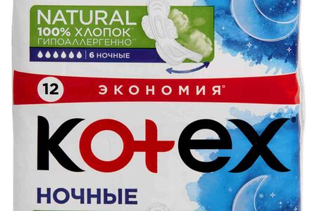 Прокладки KOTEX Natural ночные, 12 шт. доставка