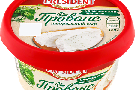 Сыр творожный мягкий PRESIDENT Прованс с прованскими травами 60%, без змж, 120г доставка