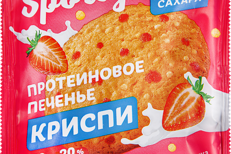 Печенье протеиновое SPORTY Криспи Клубника со сливками, без сахара, 30г доставка