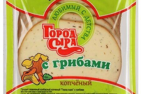 Сыр копченый Город сыра Колбасный с грибами 40%, нарезка доставка