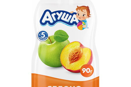 Детское фруктовое пюре Агуша Яблоко-Персик в мягкой упаковке, с 6 месяцев, 90г доставка