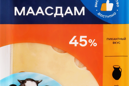 Сыр ЛЕНТА Маасдам 45% нарезка, без змж, 150г доставка