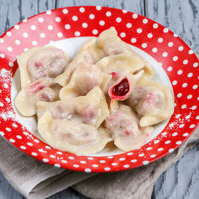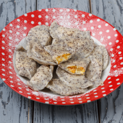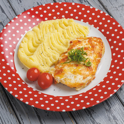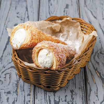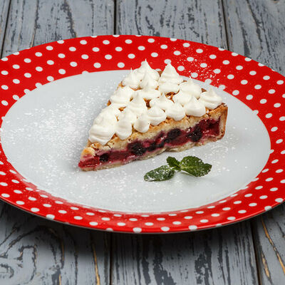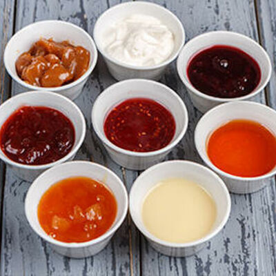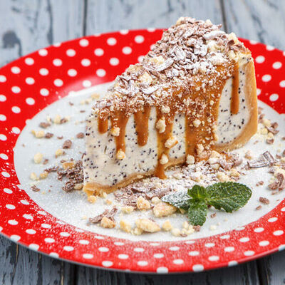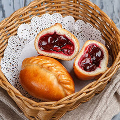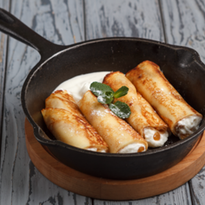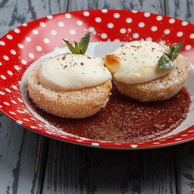 Запеченые персики с творожным сыром и клубничным соусом доставка