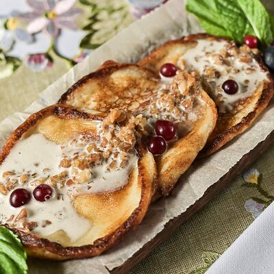 Молоко домашнее, мука, яйцо, сахар, соль, варенье, сметана домашняя (6 шт.)