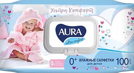 Салфетки влажные для детей с экстрактом алоэ и витамином Е с крышкой Aura Ultra Comfort 100шт доставка