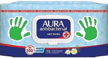 Салфетки влажные ромашка антибактериальные с крышкой Aura 72шт доставка