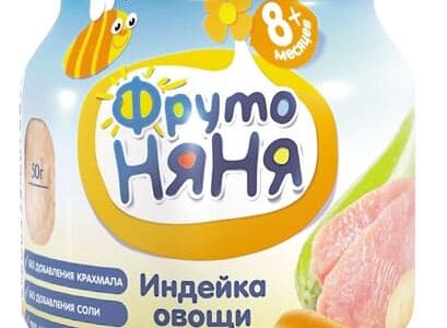 Пюре ФрутоНяня Индейка Овощи для детей с 8+ месяцев 100г. Благодаря пюреобразной консистенции, поликомпонентное мясорастительное пюре отлично подойдет для малышей, которые учатся жевать. Сочетание мясного, овощного и зернового компонентов в пюре не только поможет ребенку познакомится с новыми вкусами, но и обогатит его ежедневный рацион важными пищевыми веществами..