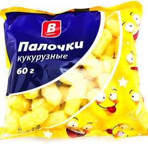 Палочки кукурузные Кузя Лакомкин сладкие - это любимое хрустящее лакомство всех сладкоежек от мала до велика! Они делаются из кукурузы отборных сортов с добавлением растительного масла и сахарной пудры. Имеют очень нежный вкус и легкий ванильный аромат. Ими так приятно похрустеть в перерывах между приемами пищи или во время просмотра интересного фильма. Именно эта марка не раз становилась победителем "Контрольной закупки" и обладателем российских и международных наград. Продукт не содержит глютен и подходит для питания детей с 3 лет.
