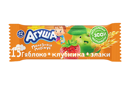 Фруктовые Батончики ДП Агуша Яблоко-Клубника-Злаки 0.54% 15г для дет.пит. с 12 месяцев доставка