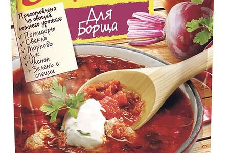 Приготовление Борща – это целое искусство! MAGGI® Заправка для Борща поможет вам радовать семью чаще любимым супом, без лишних усилий. MAGGI® Заправка для Борща приготовлена из спелых овощей летнего урожая нарезанных кусочками и пастеризована с травами и специями по классическому рецепту. В ее состав входят: натуральная томатная паста, свекла, лук, морковь, душистые травы и специи. Добавьте Заправку MAGGI® для борща в бульон с картофелем и капустой за 5 минут до готовности и ваш домашний фирменный борщ готов..