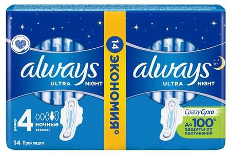 Ночные прокладки Always Ultra Night Duo 14шт, удлиненные сзади, обеспечат вам максимальную защиту от протеканий при обильных выделениях даже во время сна. Усиленный абсорбирующий внутренний слой равномерно распределяет жидкость по всей площади, быстровпитывающая поверхность гарантирует сухость и чистоту кожи, крылышки с шестью растягивающимися зонами позволяют надежно закрепить прокладку на белье так, чтобы она не сдвинулась, даже если вы ворочаетесь по ночам. Продукт эффективно нейтрализует запахи. Каждое изделие находится в индивидуальной упаковке. Протестировано дерматологами.