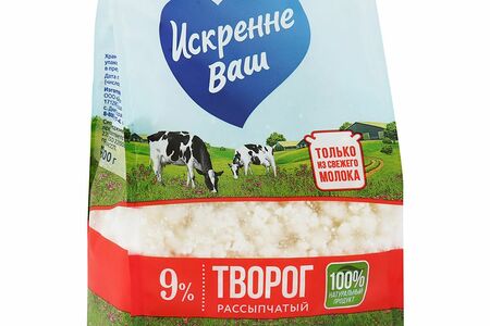 Творог «Искренне Ваш» изготавливается классическим способом из свежего молока с добавлением натуральной живой закваски, обладает приятной нежной текстурой и мягким сливочным вкусом.