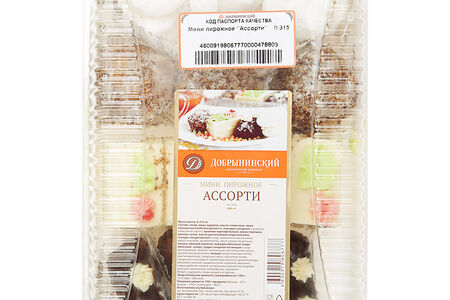 Мини пирожные "Ассорти" от Добрынинского - это набор маленьких пирожных, выполненных по классическим рецептурам и на любой вкус. Воздушное с кремом, картошка глазированная, бисквитное со сливочным кремом и заварное с обсыпкой, заполненное сливочным кремом.