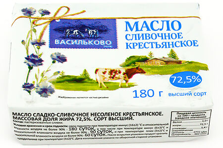 Масло сладко-сливочное крестьянское Васильково поле 72,5% 180г доставка