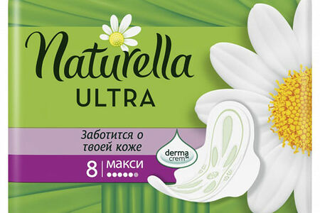 Ультратонкие удлиненные прокладки Naturella Ultra Camomile Maxi 8шт обеспечат вам надежную защиту при обильных выделениях в критические дни. Волокна уникальной впитывающей системы равномерно распределяют поступающую жидкость по всей площади и удерживают ее внутри. Мягкие и гибкие крылышки гарантируют крепкую фиксацию на белье и предотвращают протекание по бокам. Анатомическая форма и минимальная толщина (всего 2мм) позволяют изделию плотно прилегать к телу, обеспечивая комфорт при движении. Поверхность прокладки пропитана кремом Dermacrem, предохраняющим чувствительную кожу интимной зоны от раздражения.