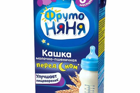 Кашка ФрутоНяня молочно-пшеничная с 6-ти месяцев 0,2л. Обогащенная пребиотиками для питания детей раннего возраста.