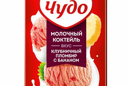 Коктейль молочный Чудо Клубничный пломбир с бананом 2% 960г доставка
