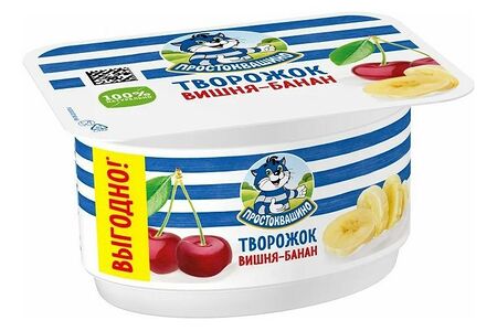 Творожок Простоквашино вишня-банан 3,6% 110г доставка