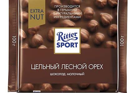 Шоколад молочный цельный лесной орех Ritter Sport 100г доставка