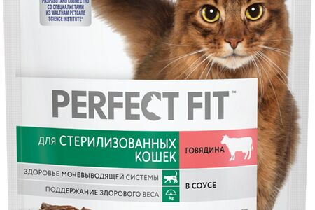 Корм для стерилизованных кошек говядина соус Perfect Fit 75г доставка