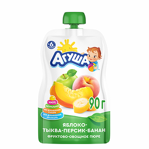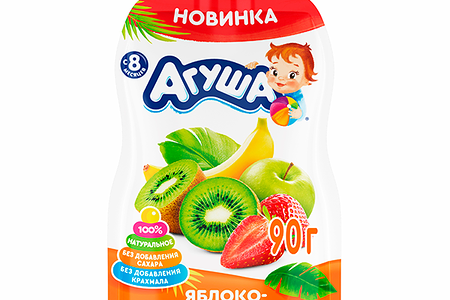 Пюре фруктовое Агуша Яблоко-Банан-Клубника-Киви 90г для дет.пит. с 8 месяцев доставка
