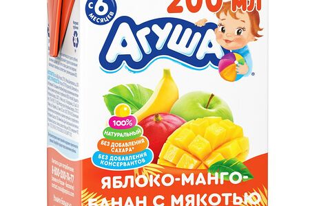 Сок яблоко/манго/банан с мякотью Агуша 200мл доставка