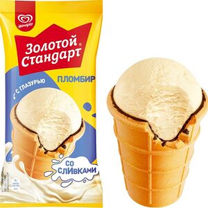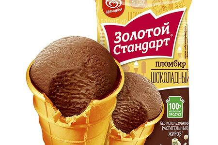 Мороженое Золотой Стандарт пломбир шоколадный в вафельном стаканчике 90г доставка