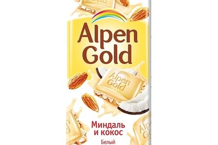 Шоколад Alpen Gold белый миндаль и кокос 85г доставка