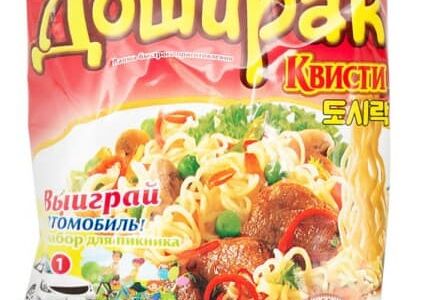 Лапша Доширак Квисти представляет собой индивидуальную порцию быстроразваривающейся лапши из высококачественной пшеничной муки в мягком пакете. В упаковке также содержатся пакетик вкусового бульона с приправой, содержащий все необходимые специи и пряности, лук и чеснок, придающие лапше неповторимый вкус и аромат; а также пакетик с сушеными овощами – вы можете дозировать приправы по своему вкусу!.