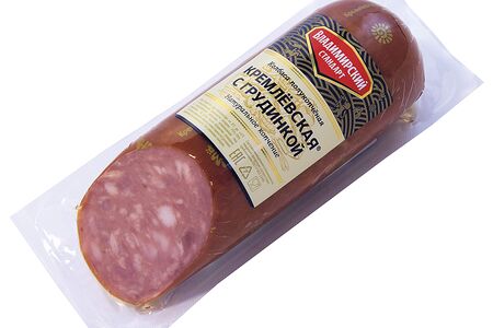 Полукопченая колбаса «Кремлевская» торговой марки «Владимирский стандарт» отличается высоким качеством благодаря отборным ингредиентам и особой системе контроля всех этапов производства. Помимо натуральной свинины, куриного мяса и шпика, в составе продукта присутствует грудинка, которая обеспечивает непревзойденный вкус. Ароматная колбаса отлично дополнит бутерброд для быстрого перекуса или сэндвич во время отдыха на природе, а также подойдет к повседневному ужину. Изделия колбасные полукопченые. Продукт мясной категории В.