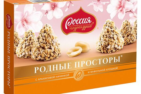 Родные Просторы – знаменитые конфеты, покрытые настоящей шоколадной глазурью и вафельной крошкой с нежной арахисовой начинкой