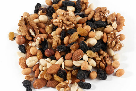 кишмиш янтарный, ядра арахиса обжаренные, ананас цукаты, бананы сушеные, папайя сушеная