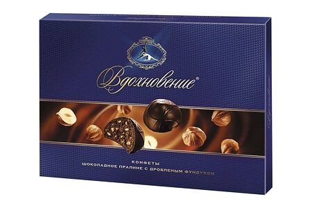 Конфеты в коробке «Вдохновение» – коренастые полукруглые конфеты из шоколадно-орехового пралине, в котором рассыпались осколки дробленого фундука. Плотная, чуть рассыпчатая текстура, узорная темная глазурь. Насыщенный аромат шоколада и богатый вкус какао и орехов – замечательный подарок для настоящих ценителей шоколадных конфет. .