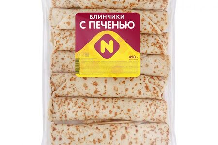 Сведения о составе: Тесто для блинов: мука пшеничная в/с, вода, молоко сухое, масло растительное, сахар, сухой яичный меланж, соль, разрыхлитель гидрокарбонат натрия. Начинка: печень свиная, вода, говядина, лук жареный, соевый белок, масло сливочное, морковь сухая, пшеничная клетчатка, соль, сахар, пряности, усилитель вкуса и аромата Е621.Срок годности в днях: 120Страна изготовления: РОССИЯСведения об упаковке: шт