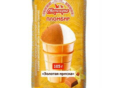 Мороженое двухслойное золотая ириска в вафельном стаканчике Свитлогорье 105 г доставка