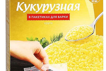 Крупа кукурузная в индивидуальных порционных пакетиках для варки.