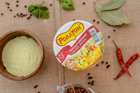 Бренд «Роллтон» – лидер рынка картофельного пюре. Картофельное пюре от «Роллтон» создано в соответствии с лучшими традициями и вкусовыми предпочтениями потребителей из самых высококачественных ингредиентов. Оно обладает нежным вкусом и приятным ароматом. При производстве используются только отборные хлопья из натурального картофеля. Аппетитное пюре можно приготовить за 5 минут – необходимо всего лишь залить содержимое стакана кипятком, перемешать и можно приступать к еде!