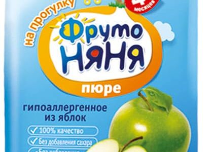 Пюре ФрутоНяня из яблок 90г - это 100% натуральный гипоаллергенный продукт без сахара, изготовленный исключительно из яблочного пюре. Рекомендуется давать детям с 4-месячного возраста, начиная с 0,5 чайной ложки 2 раза в день, постепенно увеличивая к 12 месяцам до 100 г. Мягкая упаковка с крышечкой позволяет ребенку есть самому без ложечки. Удобно брать с собой на прогулку или в гости. Не содержит консервантов, красителей, ароматизаторов и ГМО. Обратите внимание: перед введением нового продукта в рацион ребенка обязательно проконсультируйтесь с вашим педиатром!