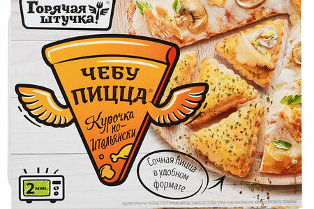Оригинальные блюда Горячая штучка - это смелые идеи и революционные сочетания для тех, кто не стоит на месте и любит пробовать что-то новенькое! Например, чебупицца Горячая штучка Курочка по-итальянски 250г. Чебупицца - это начинка из сочного куриного филе, расплавленного сыра и шампиньонов, треугольная форма, как у пиццы, а золотистая хрустящая корочка из обжаренного во фритюре теста, как у чебуреков. Всего 3 минуты в микроволновой печи - и готово блюдо для сытного перекуса на работе, быстрого обеда или веселой дружеской вечеринки. Продукт не требует предварительного размораживания.