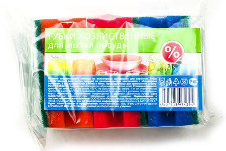 Губка для посуды 80х60х40мм "%" 3шт доставка