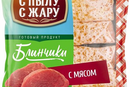 Блинчики С пылу с жару с мясом 360г - это замороженный полуфабрикат, представляющий собой ажурные бездрожжевые блинчики двусторонней обжарки. Они наполнены мясной начинкой из говядины и курицы с добавлением лука и специй, завернуты в рулетики и полностью готовы к термической обработке. Приготовить их можно тремя разными способами: обжарить на сковороде с добавлением растительного масла; выложить на противень и запечь в духовке; не вскрывая упаковку, разогреть в микроволновой печи. В любом случае продукт не требует предварительной разморозки.