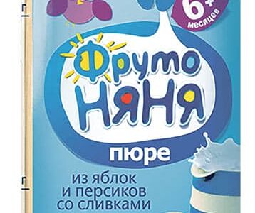 Пюре ФрутоНяня из яблок и персиков со сливками для детей с 6 месяцев 250г. .