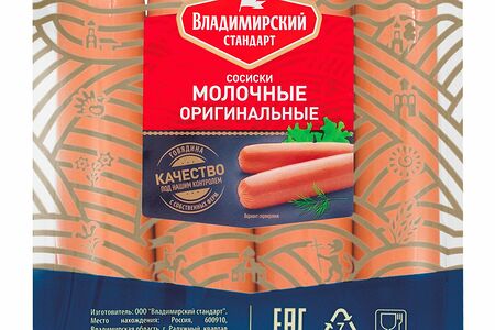 Сосиски молочные оригинальные Владпродукт 480г доставка