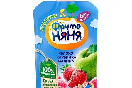 Пюре яблоко-клубника-малина ФрутоНяня 90г доставка