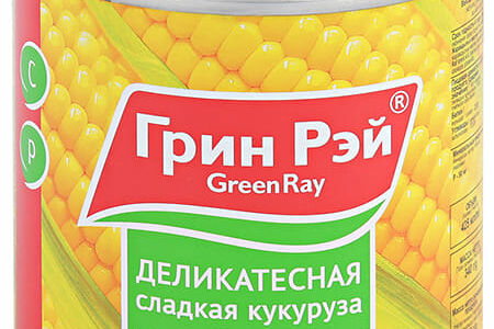 Кукуруза Green Ray деликатесная сладкая 425мл производится из отборного сырья, выращенного на собственных полях компании в Краснодарском крае. Особая технология стерилизации позволяет сохранить в ней все полезные свойства, витамины и минералы. Продукт соответствует ГОСТ и относится к высшему сорту. Зернышки кукурузы цельные, одинакового цвета и консистенции, залиты умеренным количеством жидкости. При производстве не используется замороженное сырье, ГМО, искусственные добавки, консерванты и усилители вкуса..