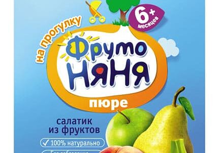 Пюре ФрутоНяня салатик из фруктов для детей с 6 месяцев 90г. Пюре из фруктовое "салатик из фруктов" для питания детей раннего возраста..