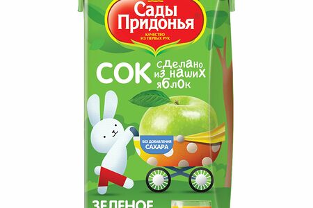 Сок Сады Придонья зелёное яблоко. Качество из первых рук. Без ГМО. Без сахара..