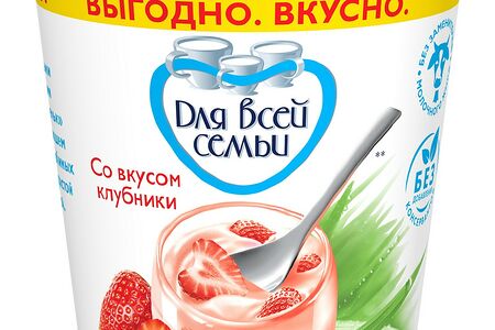 Продукт йогуртный ДЛЯ ВСЕЙ СЕМЬИ Клубника 1%, без змж – нежный кисломолочный продукт с мягким ягодным вкусом. Йогурт содержит комплекс витаминов, а также полезные бифидобактерии, которые нормализуют работу желудочно-кишечного тракта. В меру сладкий с кисловатым послевкусием прекрасно подходит как для завтрака, так и для легкого перекуса в течение дня. Без заменителей молочного жира больше вкуса для всей семьи. Его добавляют в творог, коктейли, заправляют им салаты.