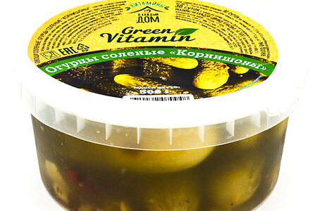 Огурцы соленые корнишоны Green vitamin 500г доставка
