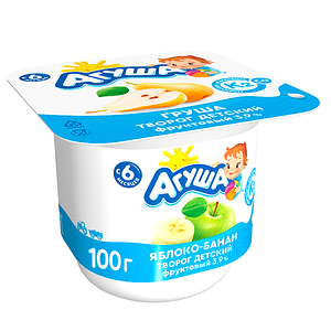 взбитая творожная основа (творог, сливки, йогурт, сахар, стабилизаторы (E1422, гуаровая камедь, камедь тары, пектин, E1442), желатин), фруктовый наполнитель (вода, фрукты (персик, груша), сахар, глюкозно-фруктозный сироп (G)*, стабилизаторы (Е1442, гуаровая камедь, ксантановая камедь, камедь рожкового дерева), ароматизатор «Персик-Груша», регулятор кислотности - лимонная кислота)